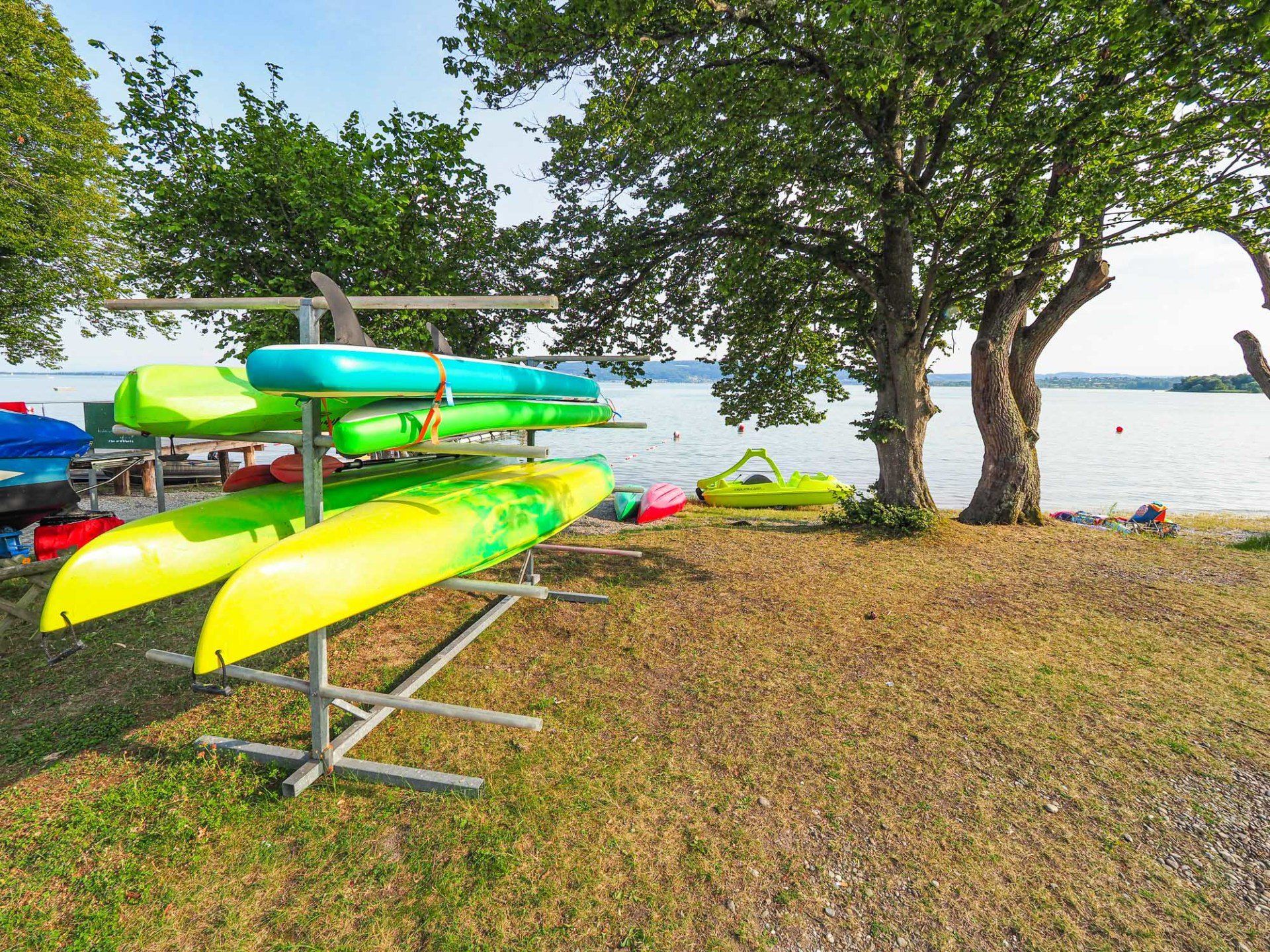 On our campsite there are several spacious sunbathing areas directly on the shore of the Untersee. The shore is flat and it only gets deeper slowly.